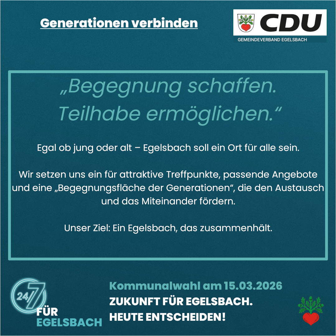 Uns vereint der Anspruch, unser schönes und liebenswertes Egelsbach mit seinen Traditionen und vielfältigem ehrenamtlichen Engagement zu erhalten und für die Zukunft fit zu machen.